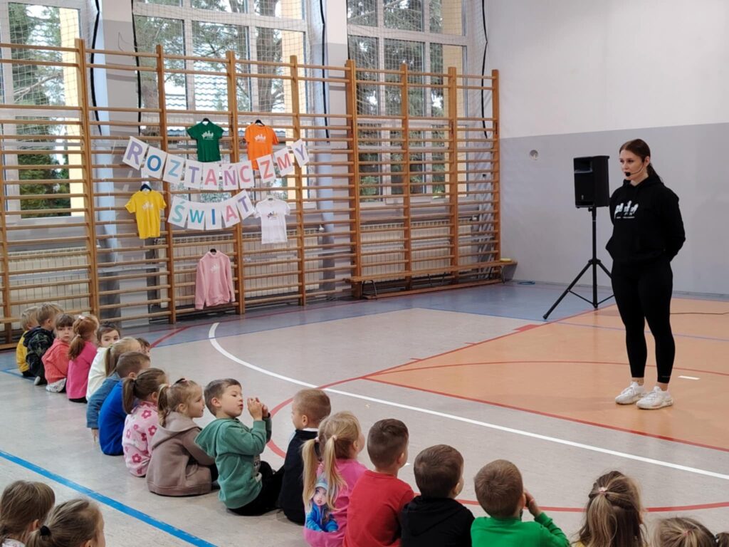 Dzieci z grupy Sówki i „Zerówka” rozpoczęły tydzień tanecznym krokiem. W poniedziałek 29 września, podobnie jak cała szkoła, brały udział w warsztatach tanecznych z Paniami z zaprzyjaźnionej ze szkołą grupy „Dance & Fun”.