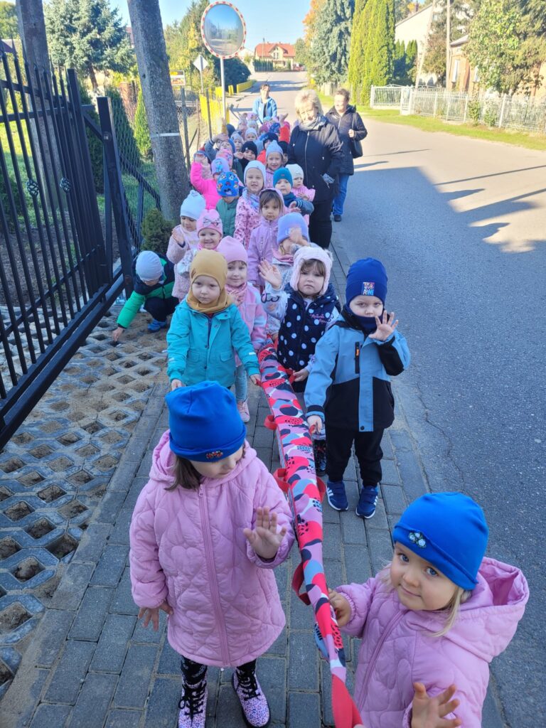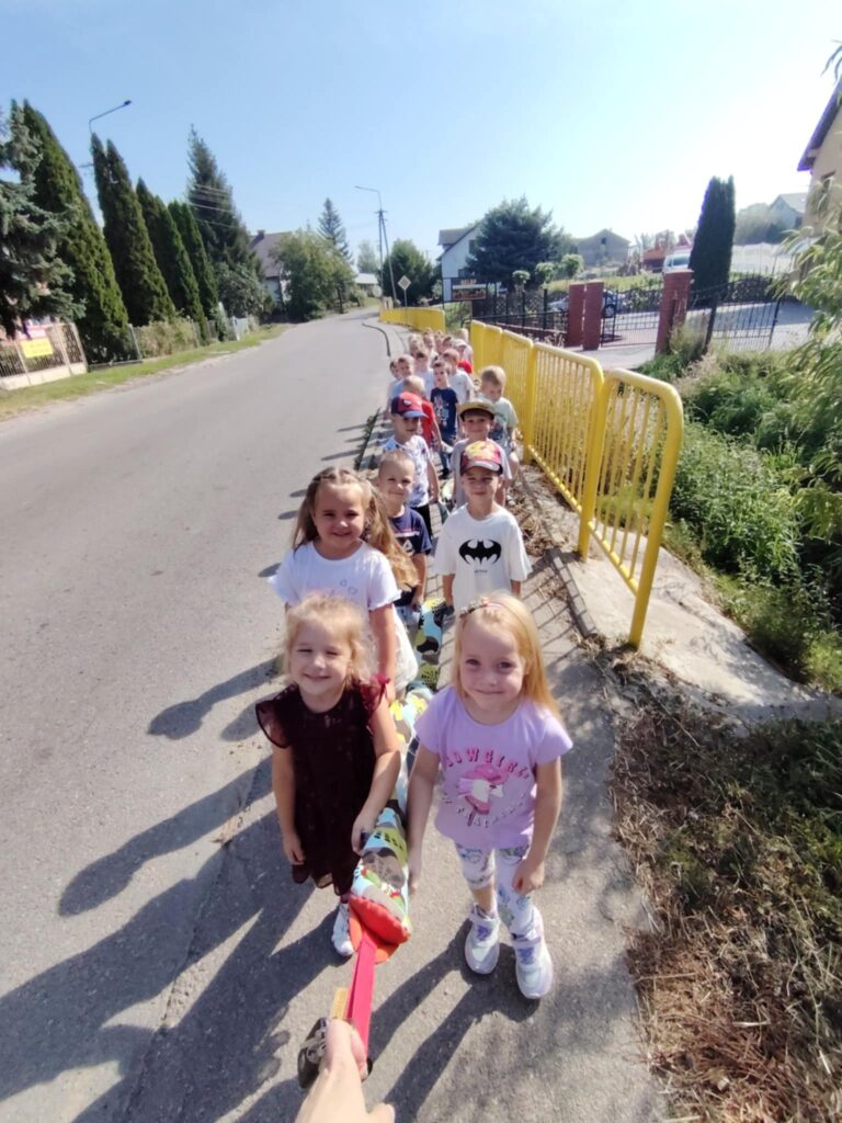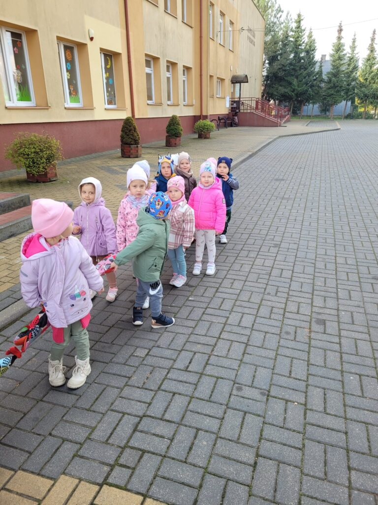 Najmłodsza grupa „ Motylki ” i dzieci z grupy „ Sówki ” wybrały się wspólnie na jesienny spacer ulicami Przesmyk. Dzieci z ciekawością obserwowały zmieniającą się przyrodę – spadające liście i jesienne kolory drzew. Zatrzymały się również w parku przy kościele, gdzie mogły chwilę odpocząć i porozmawiać o oznakach jesieni. Spacer był pełen radości i wspólnych rozmów. Przedszkolaki wróciły do przedszkola z uśmiechem na twarzach i głowami pełnymi wrażeń.