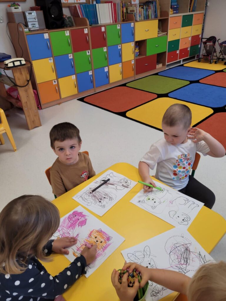 Przedszkolaki wymyślały, co może powstać z małej kropki, tworząc pomysłowe prace plastyczne. Nie zabrakło także wspólnych zabaw, pozowania do zdjęć. Całości towarzyszyła muzyka i wesoła atmosfera, dzięki czemu dzień upłynął w radosnym nastroju.