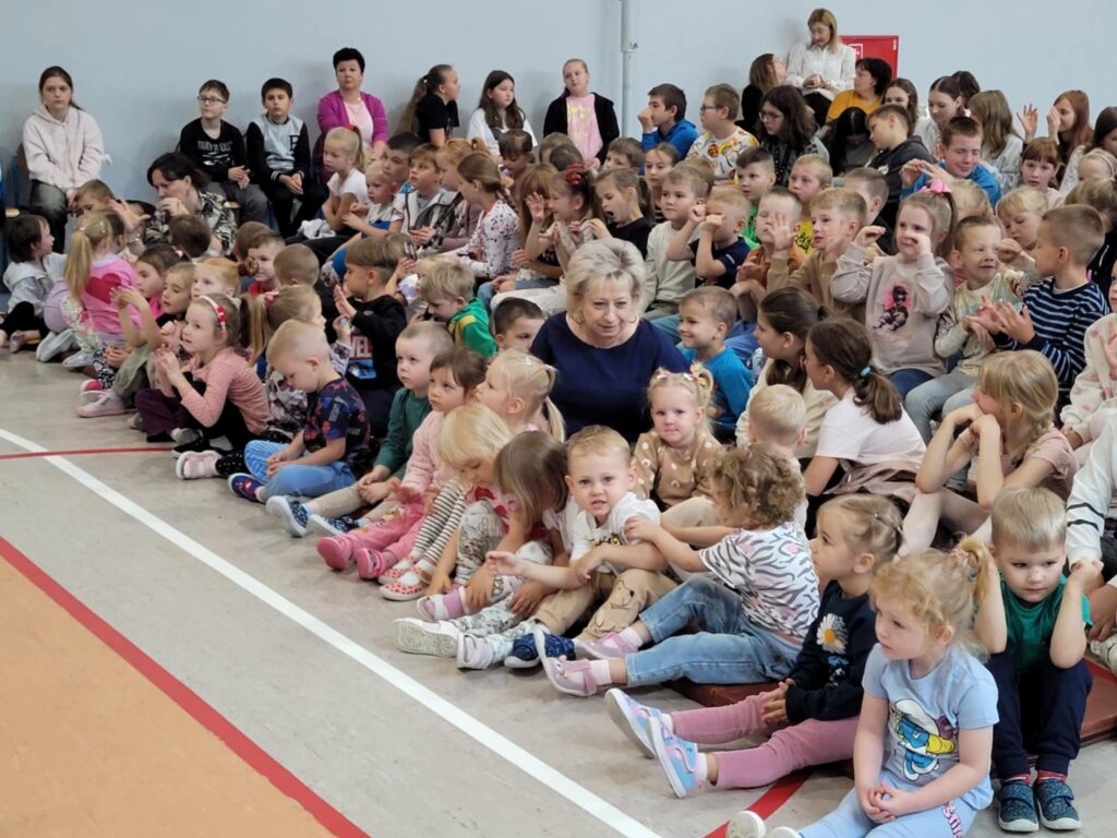 Druga część koncertu była prawdziwą muzyczną ucztą – wspólnie z uczniami oraz artystami śpiewaliśmy znane, polskie piosenki, które szybko podbiły serca małych słuchaczy. Dla naszych przedszkolaków było to wyjątkowe doświadczenie – Motylki i Sówki po raz pierwszy uczestniczyły w tak dużym koncercie.