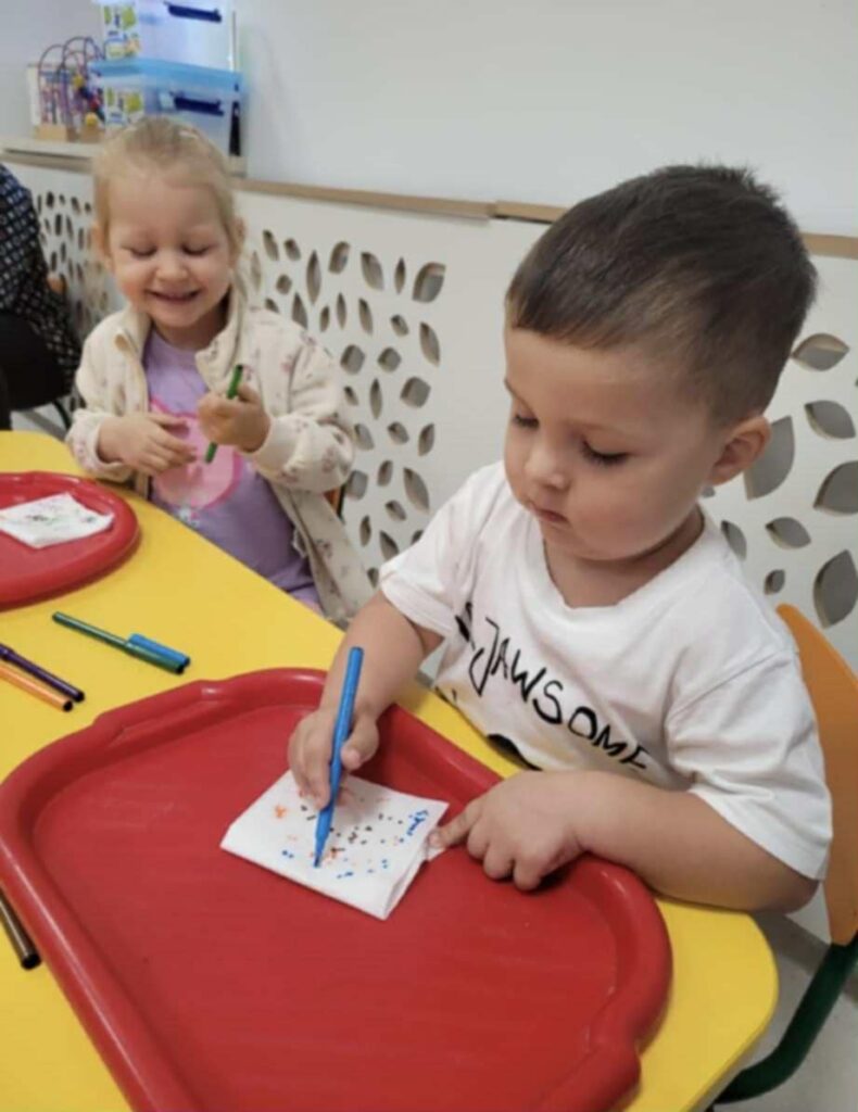 Na początku maluszki grupy „Motylki” poznały historię tego święta i wysłuchały opowiadania o małej dziewczynce Vashti oraz niezwykłej kropce, która odmieniła jej życie. Dzięki tej opowieści dzieci przekonały się, że każdy z nas ma w sobie ukryte talenty i że warto wierzyć we własne zdolności.