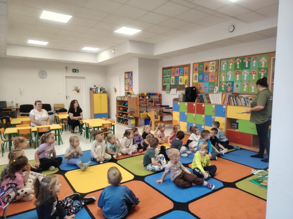 W ubiegły czwartek tj. 23 października nasze przedszkole odwiedziła Pani Barbara Ługowska z Nadbużańskiego Parku Krajobrazowego. Dzieci z obydwu młodszych grup z zainteresowaniem oglądały prezentację multimedialną przygotowaną przez Panią Basię.