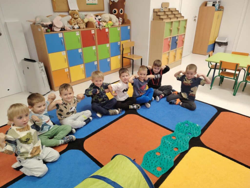 We wtorek 30 września pierwszy raz indywidualnie (bez świętowania z dziewczynkami) chłopcy z grupy Sówek obchodzili swoje święto. Jako, że dzieci są już starsze, stanęły na wysokości zadania i należycie podeszły do organizacji. Świętowanie zaczęliśmy od tańca grupowego w rytm piosenki „Góry do góry”. Dowiedzieliśmy się skąd wywodzi się to święto i jak świętują inni. Potem chłopcy musieli udowodnić, że są dzielni i odważni. Przeszli z szybkością błyskawicy tor przeszkód. Koleżanki z grupy głośno im dopingowały i dodawały otuchy. Następnie wręczyły swoim kolegom zasłużone prezenty. Nie obyło się też bez sesji zdjęciowej