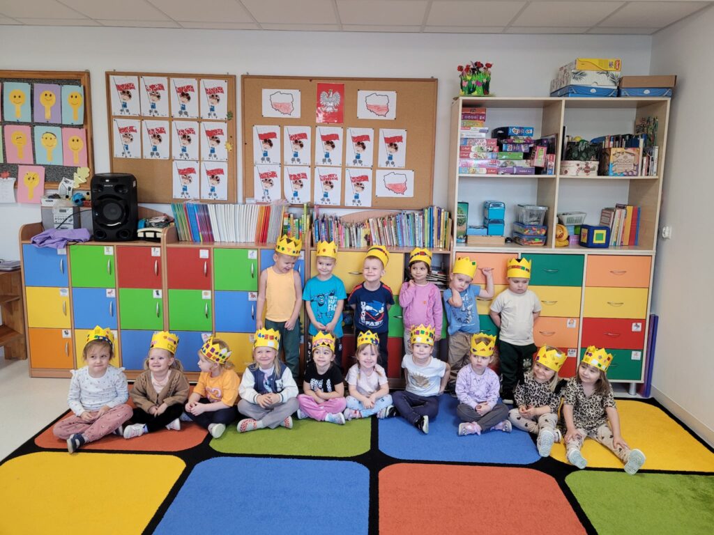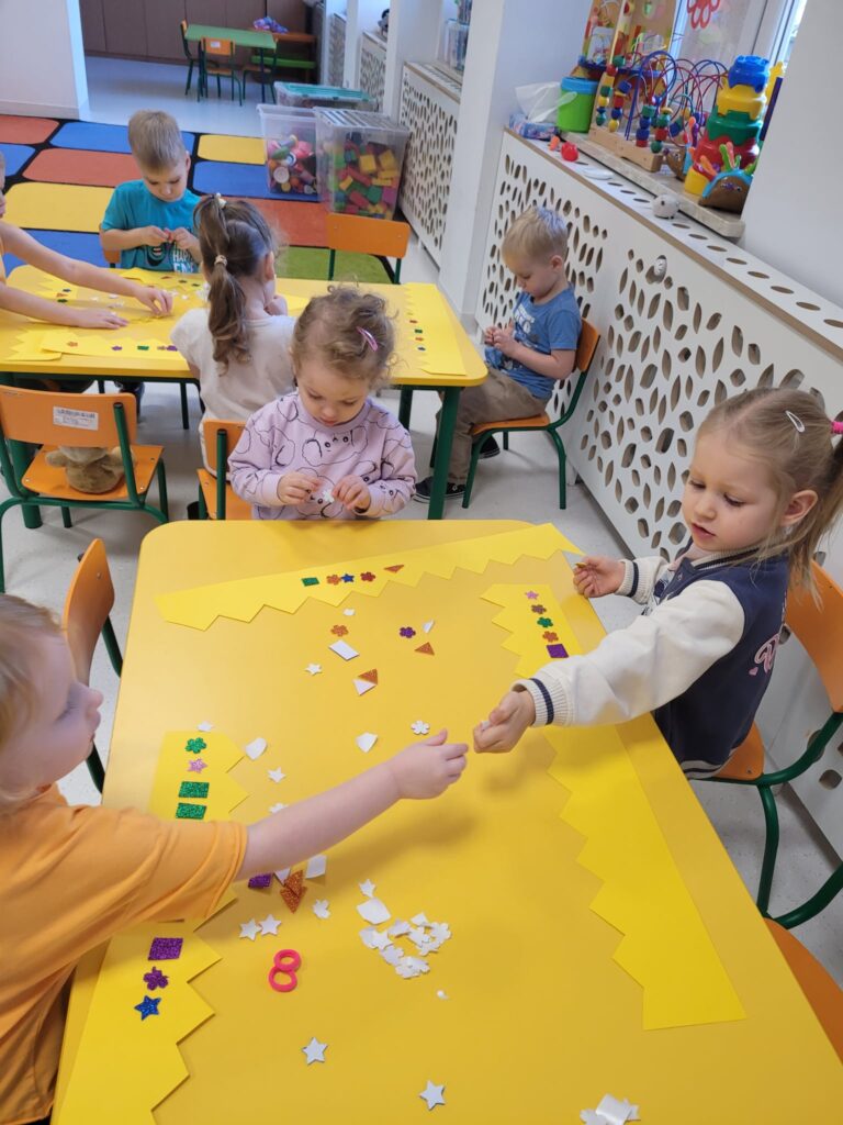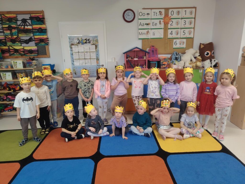 Następnie przedszkolaki przyozdabiały korony według swoich pomysłów. Potem z dumą nosiły je w ciągu dnia, wcielając się w role księżniczek i królewiczów.