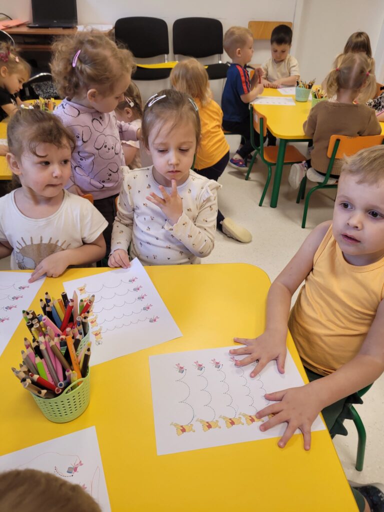 14 listopada grupa przedszkolna „Motylki” obchodziła Dzień Postaci z Bajek. Dzieci wykonywały bajkowe szlaczki ćwicząc precyzyjne ruchy dłoni i palców, świetnie się przy tym bawiąc.