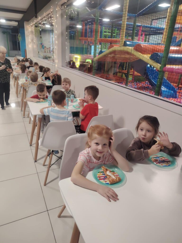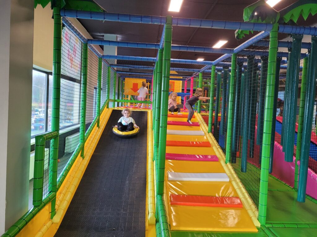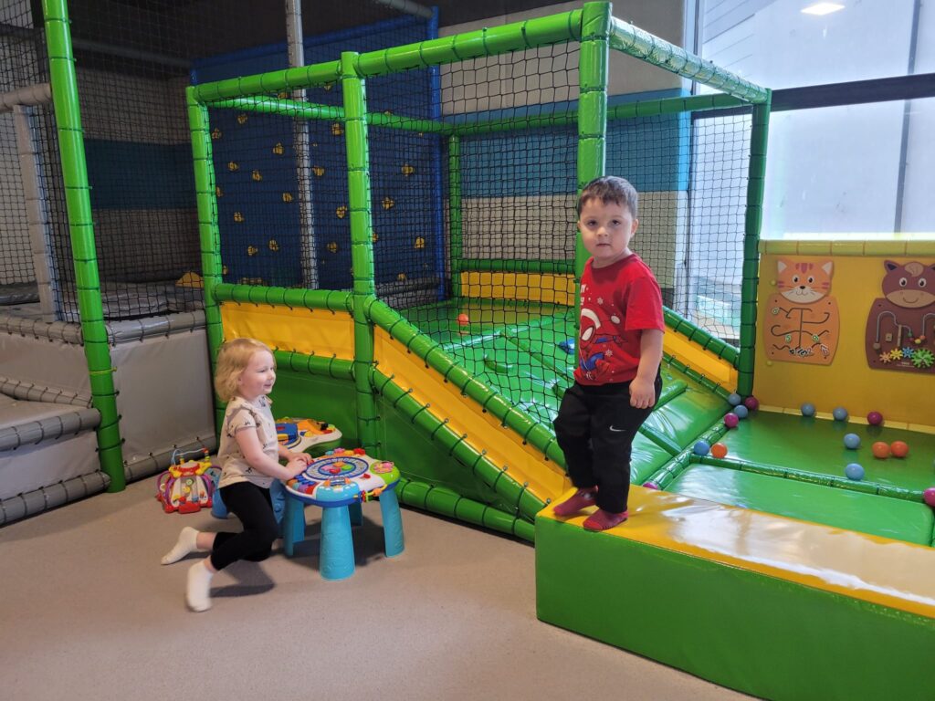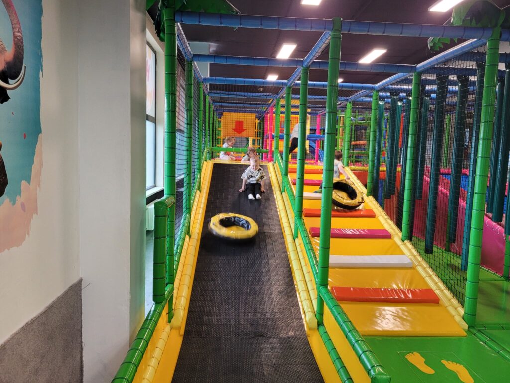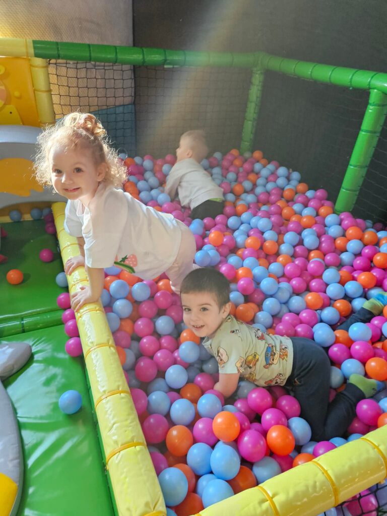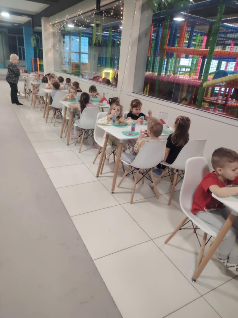 Po dotarciu na miejsce dzieciom zostały przypomniane zasady bezpiecznego korzystania z atrakcji. Następnie przedszkolaki weszły do głównej sali zabaw. Dzieci z radością korzystały z dostępnych atrakcji – biegały, skakały, zjeżdżały na zjeżdżalniach i pontonach, wspinały się po konstrukcjach, jeździły samochodzikami oraz bawiły się w basenie wypełnionym kolorowymi piłkami.
