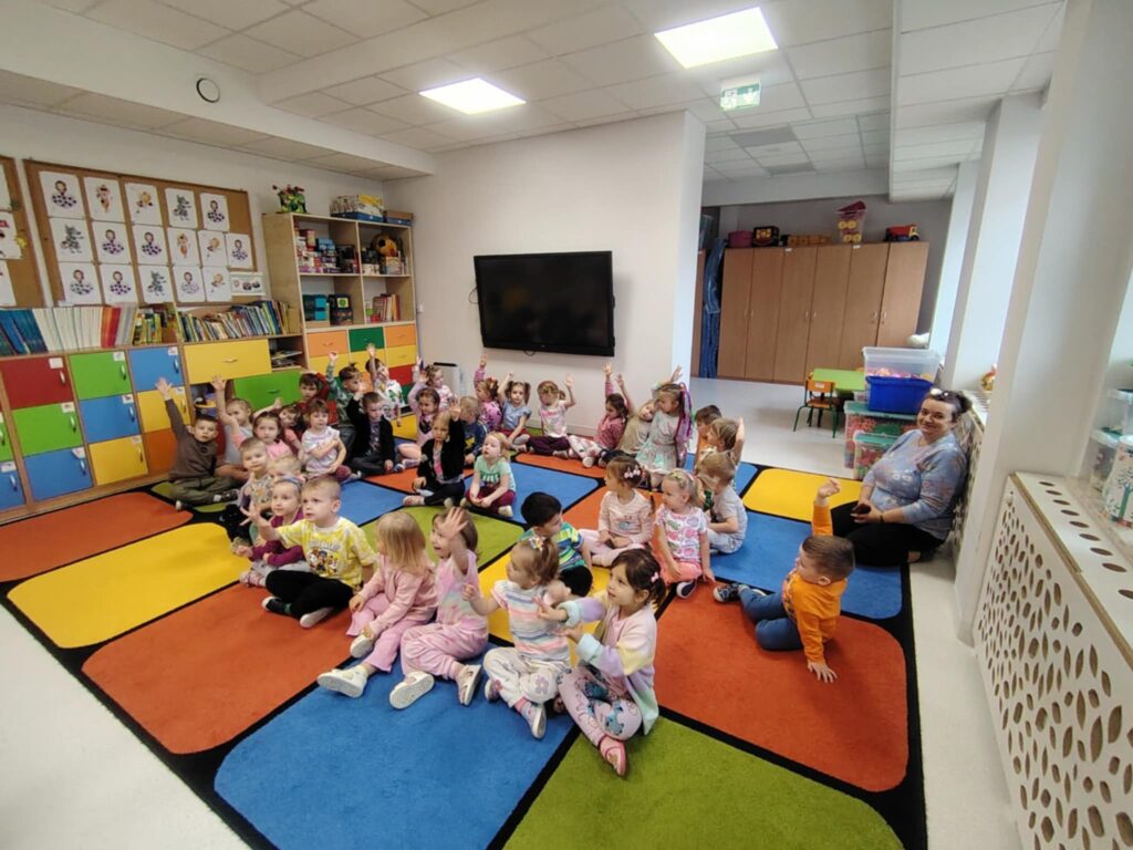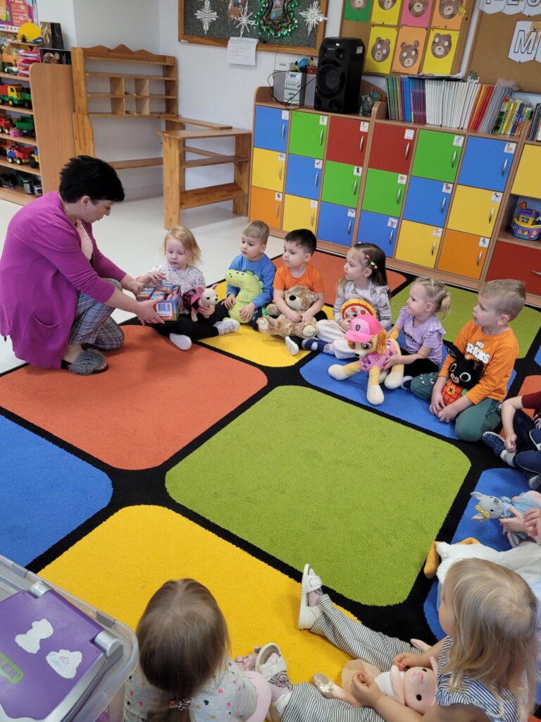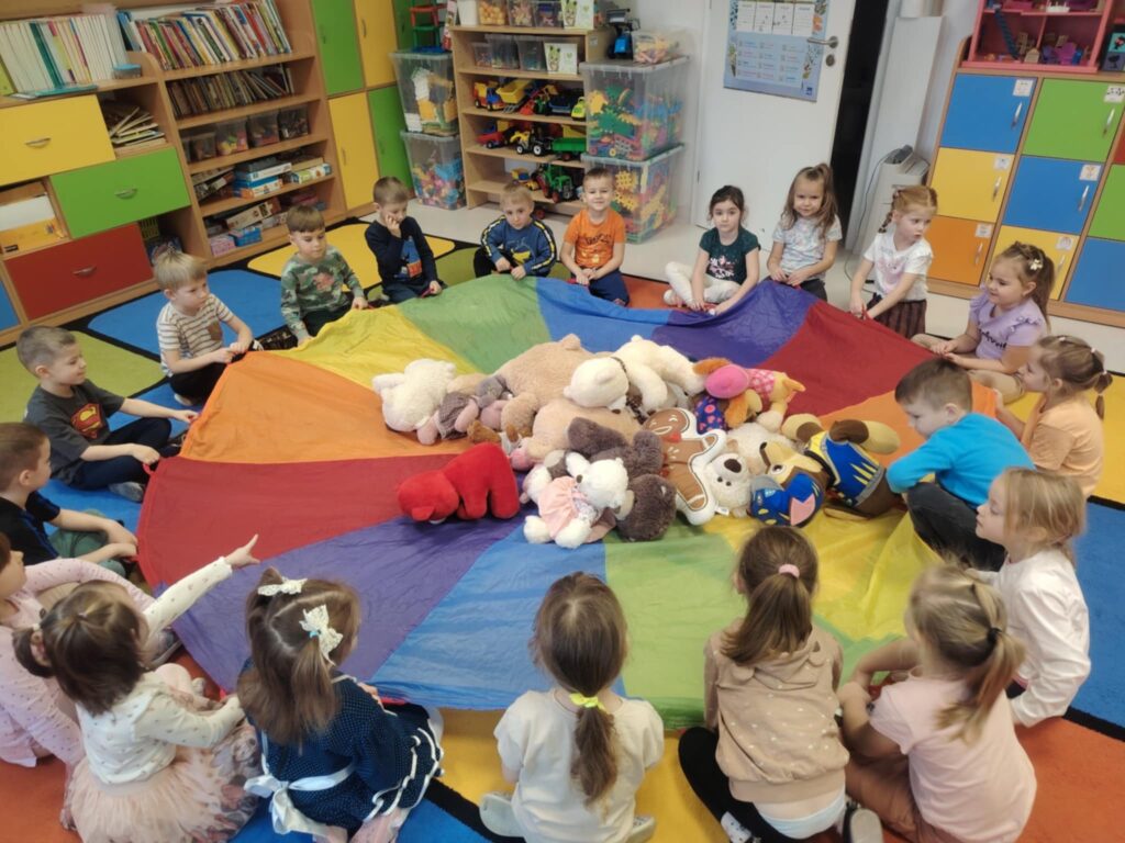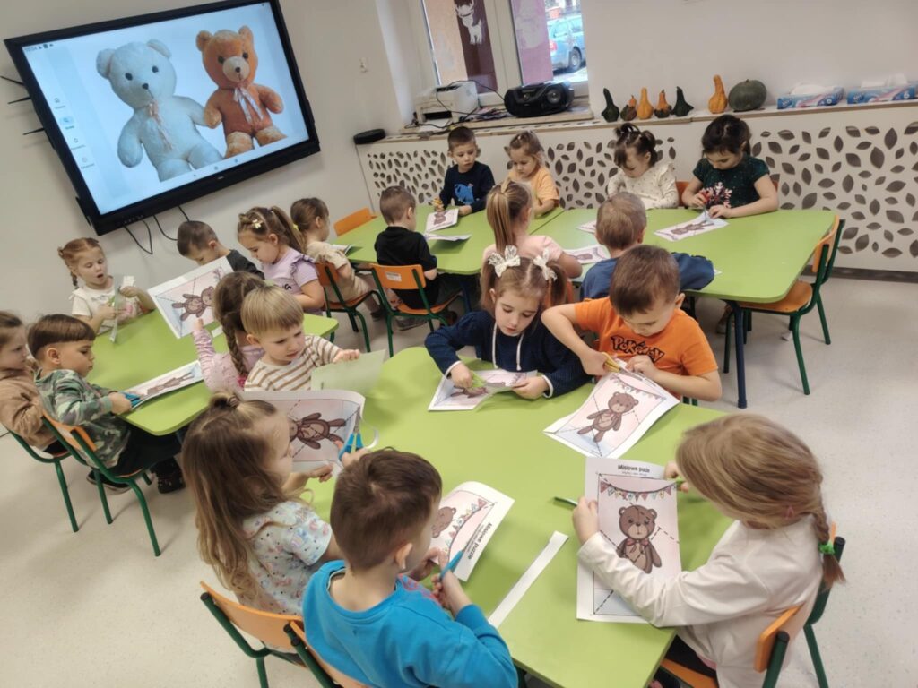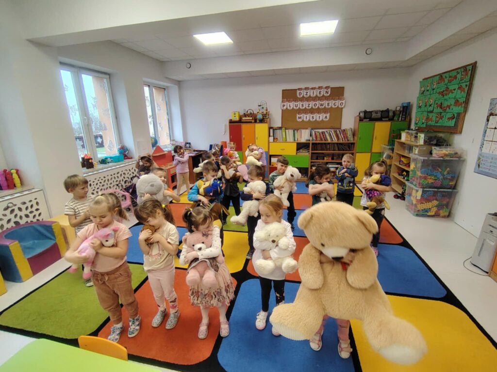 Od samego rana w sali było gwarno, kolorowo i bardzo wesoło. Na początku każde dziecko zaprezentowało swojego pluszowego przyjaciela. Dzieci opowiadały, dlaczego ich miś jest dla nich ważny, jak wygląda i co sprawia, że jest wyjątkowy. Był to moment pełen szczerej radości i dziecięcych emocji.