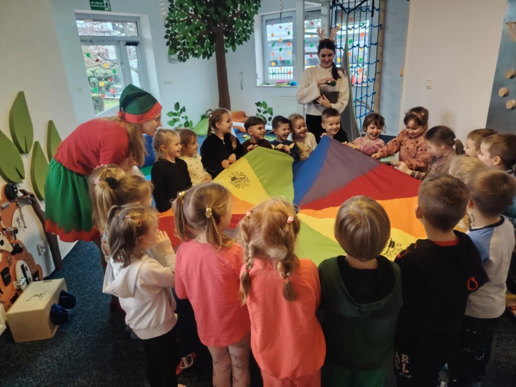 Energia i chęć do zabawy nie miały końca. Wspólnie spędzony czas sprzyjał integracji grupy, a różnorodne aktywności ruchowe wspierały rozwój ogólnej sprawności fizycznej dzieci.