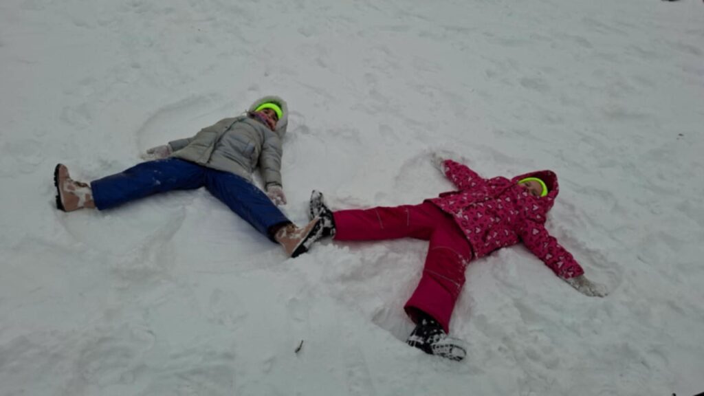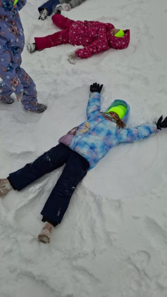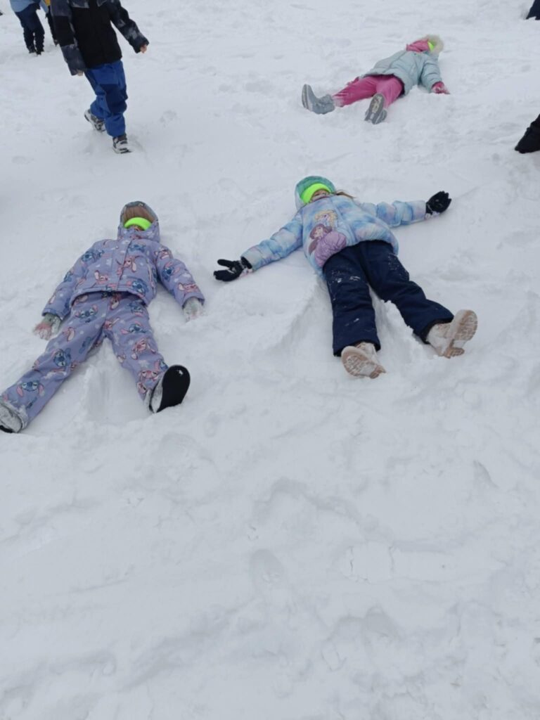 W związku z tym, że nasza Zerówka ma mnóstwo energii zaraz po poczęstunku ruszyła na górkę. Dzieci zjeżdżały, ślizgały się, rysowały aniołki.