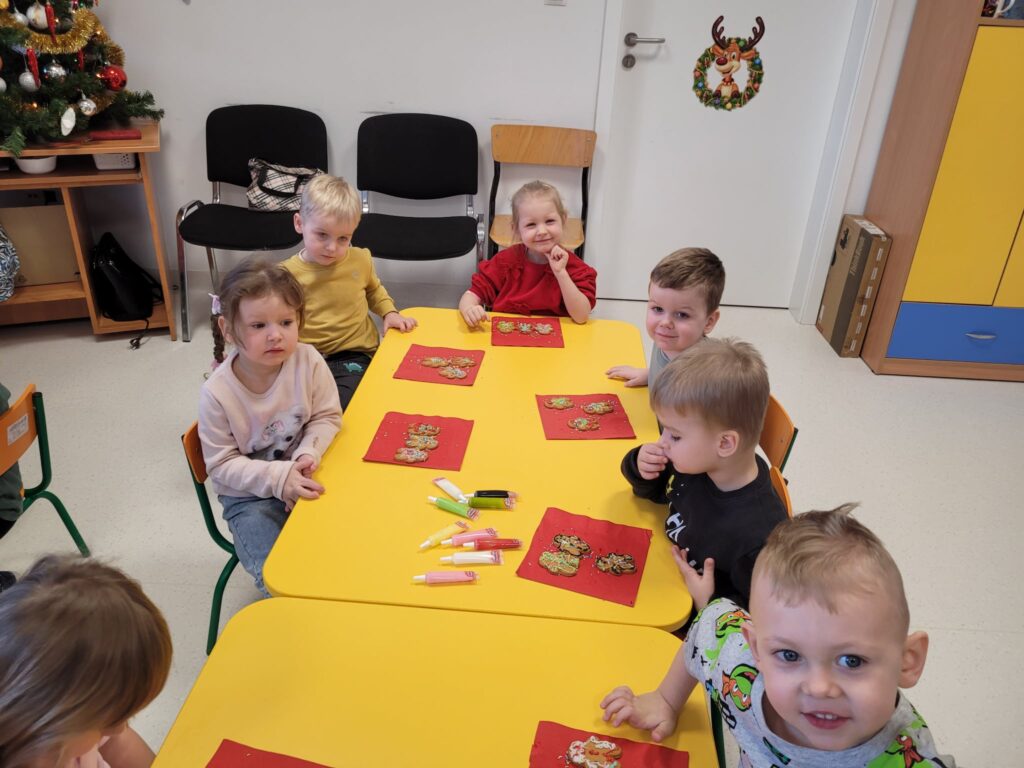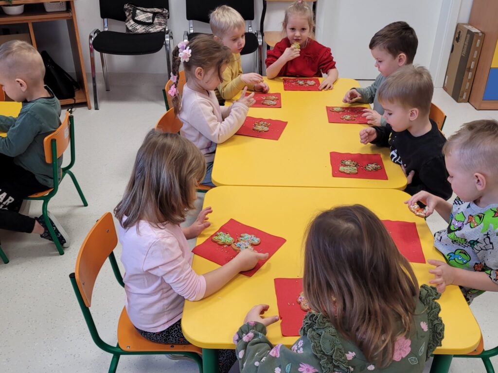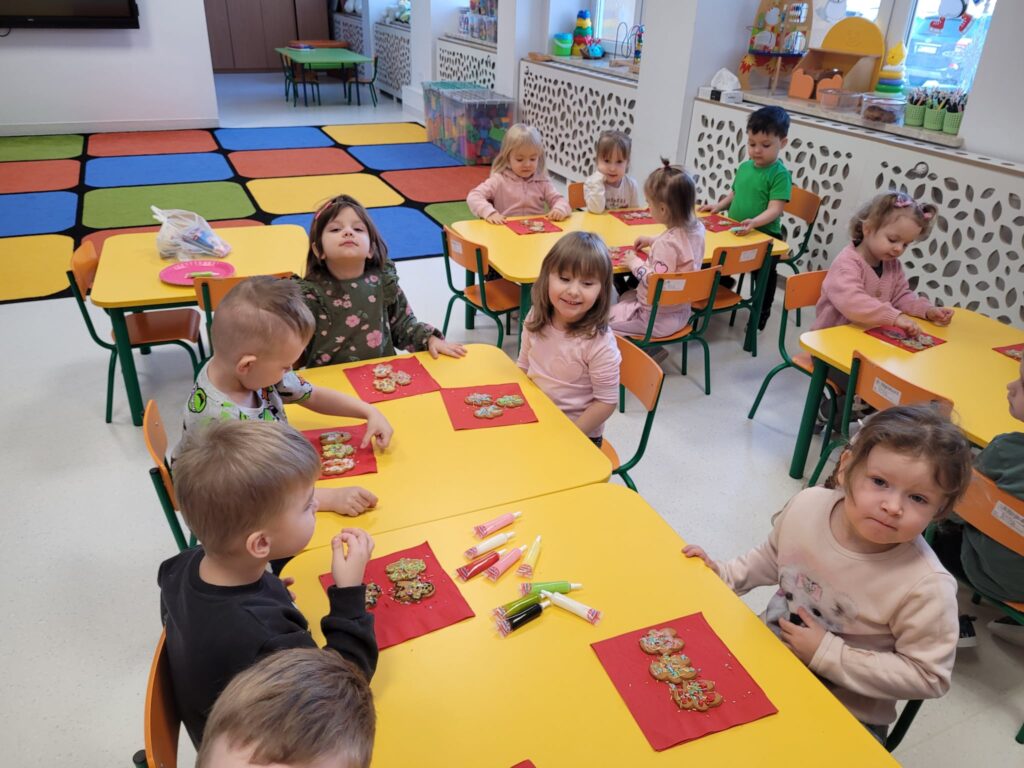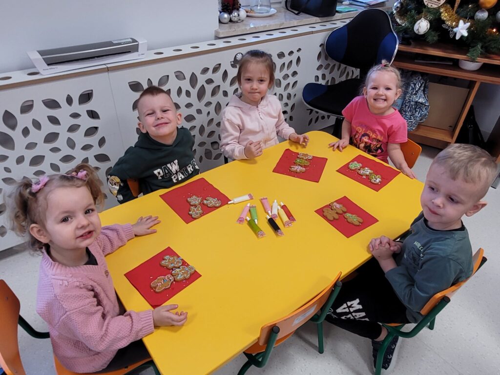 W styczniowy wtorek w grupie Motylki unosił się zapach pierników. Dzieci z radością dekorowały pierniczki cukrowymi pisakami oraz kolorową posypką, tworząc prawdziwe małe dzieła sztuki.