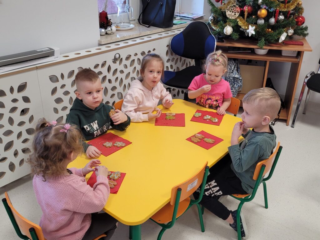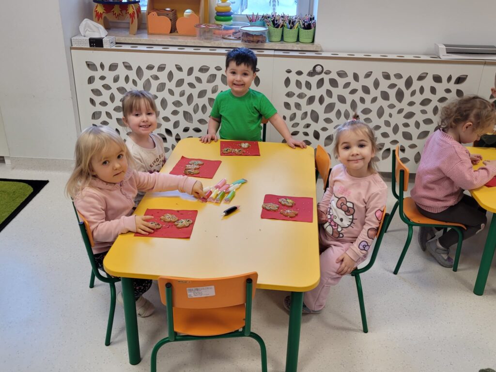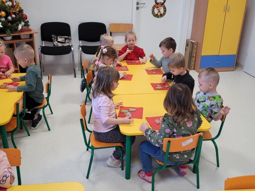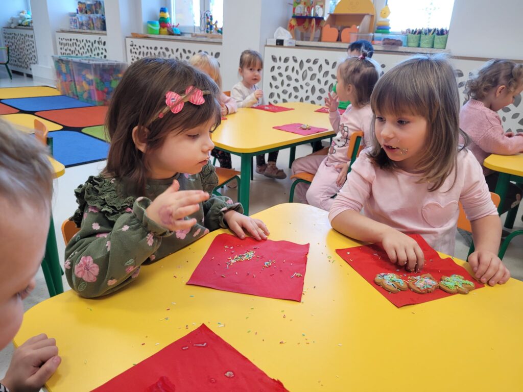 W styczniowy wtorek w grupie Motylki unosił się zapach pierników. Dzieci z radością dekorowały pierniczki cukrowymi pisakami oraz kolorową posypką, tworząc prawdziwe małe dzieła sztuki.