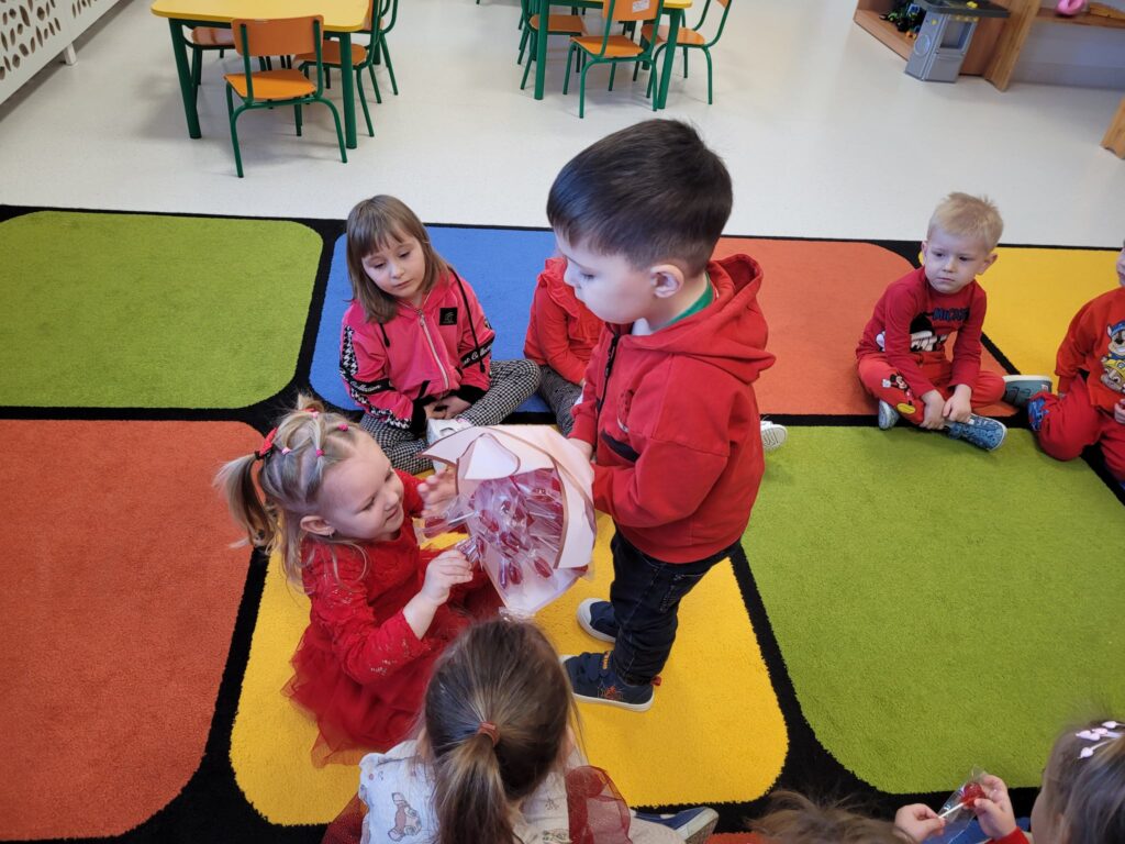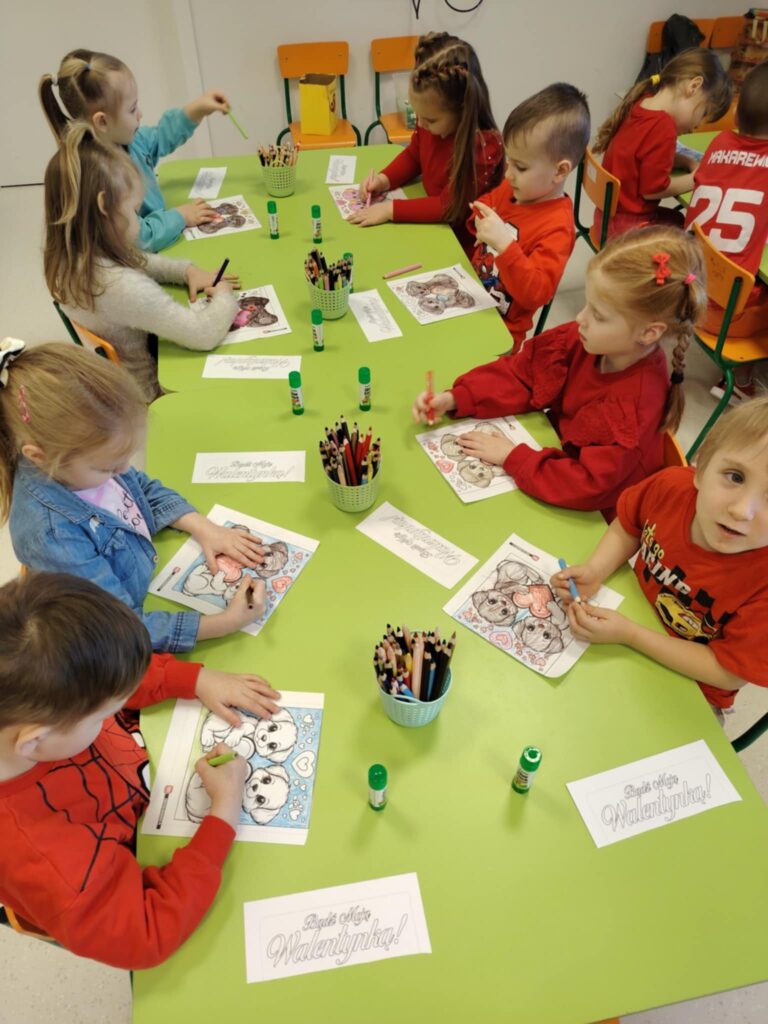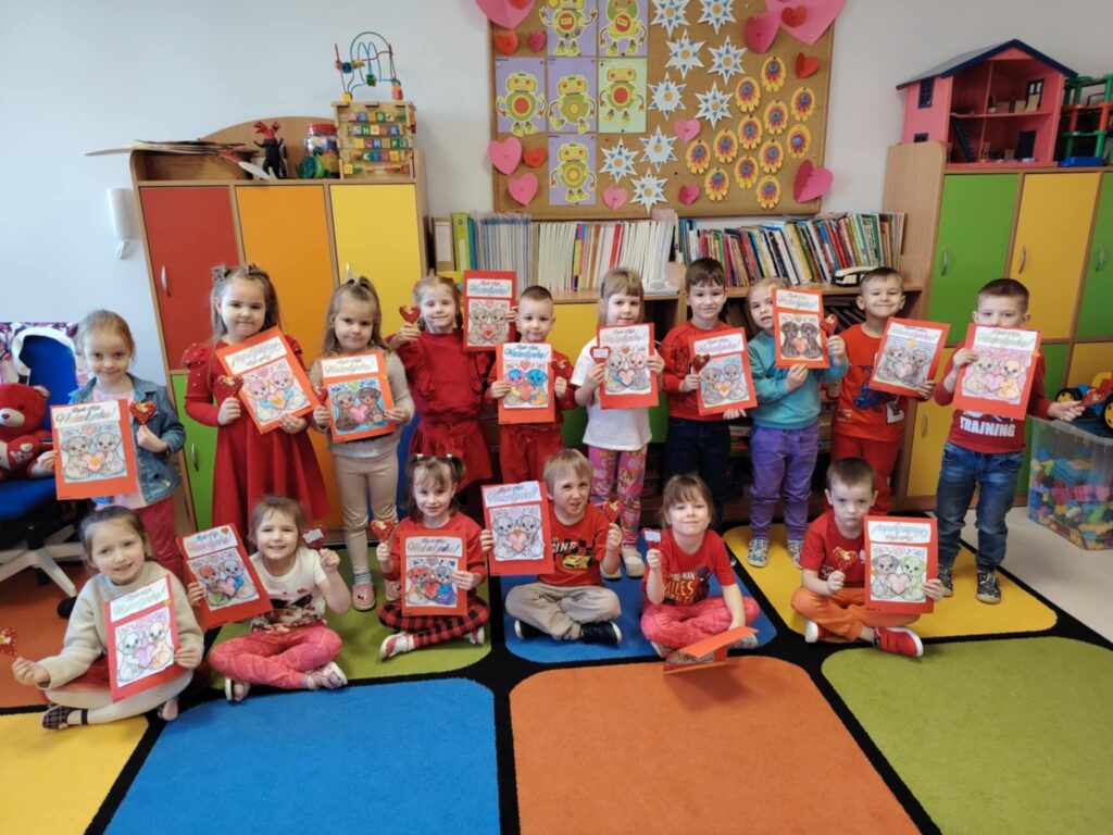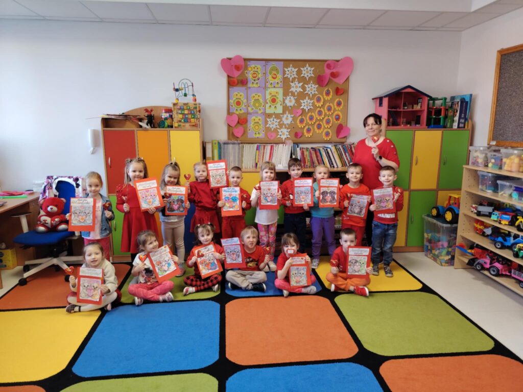 16 lutego w naszym przedszkolu obchodziliśmy Walentynki. Dzieci przyszły ubrane na czerwono, wprowadzając do sali radosny nastrój. Maluszki wspaniale się bawiły. Wykonywały również walentynkowe karty pracy – starannie ozdabiały swoje prace, rozwijając przy tym sprawność manualną i kreatywność.