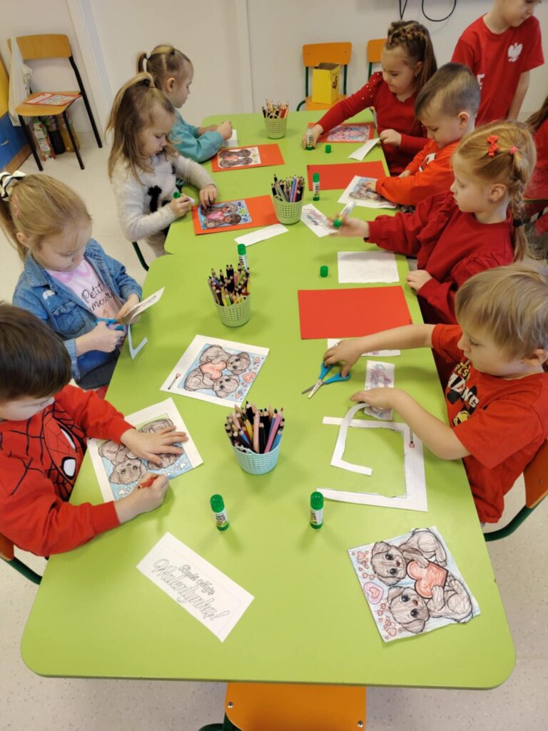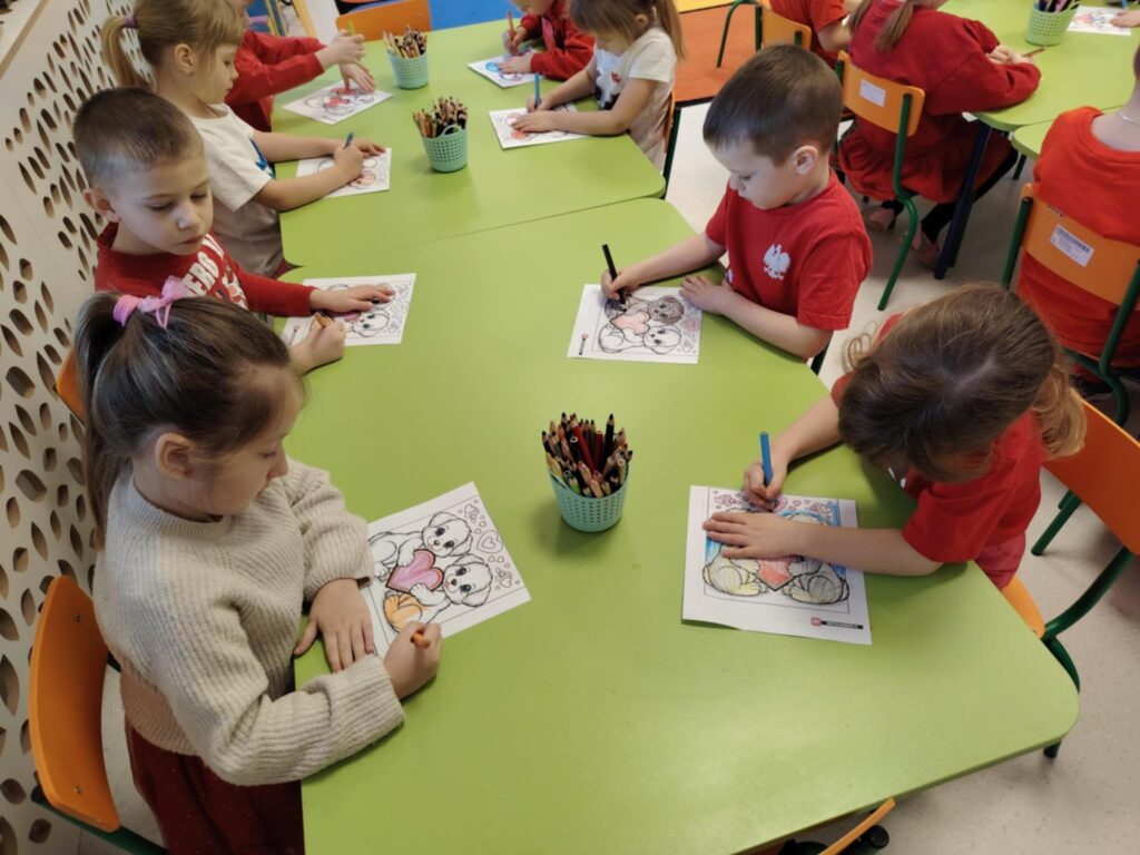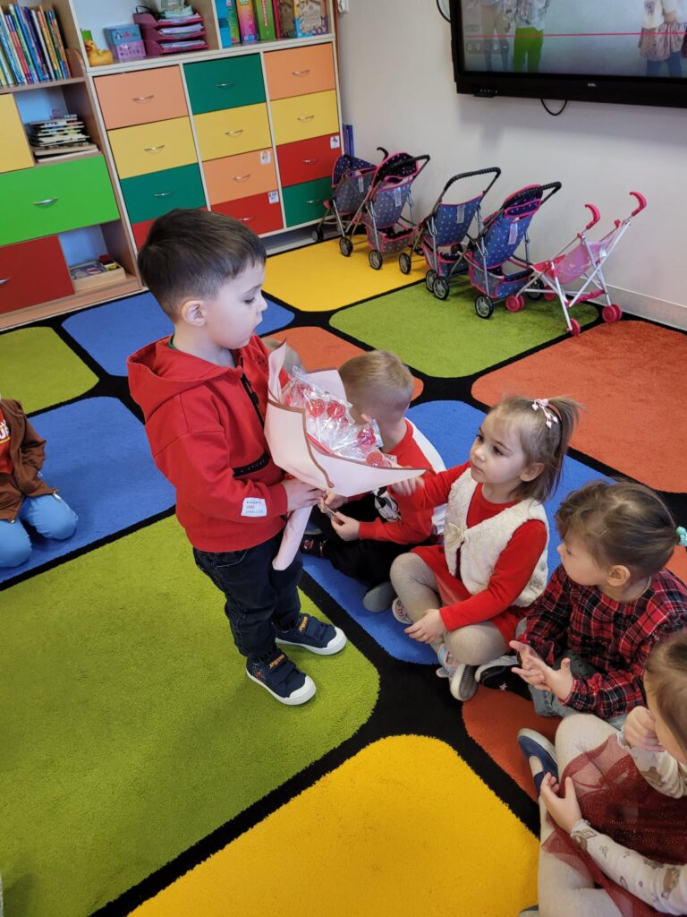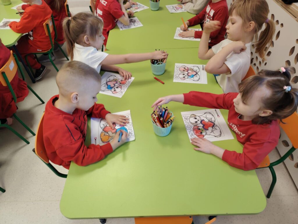 16 lutego w naszym przedszkolu obchodziliśmy Walentynki. Dzieci przyszły ubrane na czerwono, wprowadzając do sali radosny nastrój. Maluszki wspaniale się bawiły. Wykonywały również walentynkowe karty pracy – starannie ozdabiały swoje prace, rozwijając przy tym sprawność manualną i kreatywność.